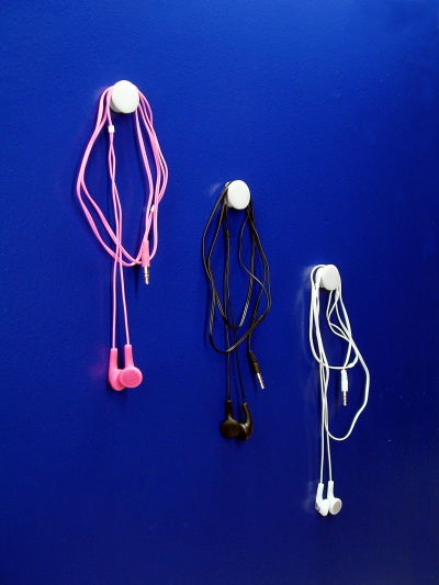 Stow Dots were developed primarily to hold those awkward, stringy things we own. Earbuds were at the top of the list. Jam those into your pocket and Chaos Theory dictates that you'll have at least 3 Overhand knots, 2 Stevedore's knots, and if you are really unlucky, a Midshipman's hitch. Its best to hang those earbuds up when you're not using them. (PIC 1-2)