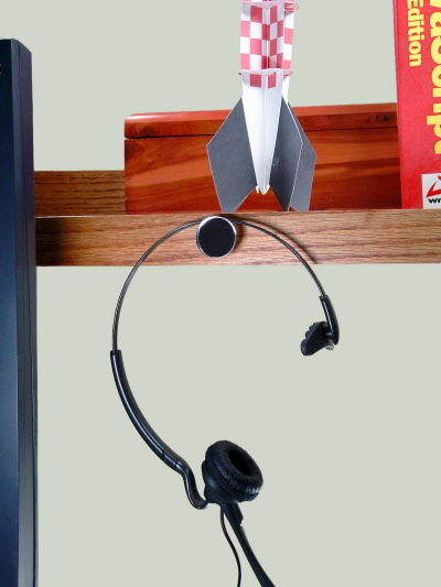 This headset was tossed by the phone when not in use, creating a mess. The Mirrored Stow Dot not only cleaned up the desk and made it quick to access, but also lets one nonchalantly check if the boss is sneaking up on you. Bonus. (PIC 1-3)