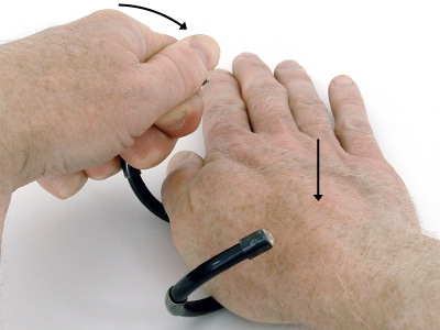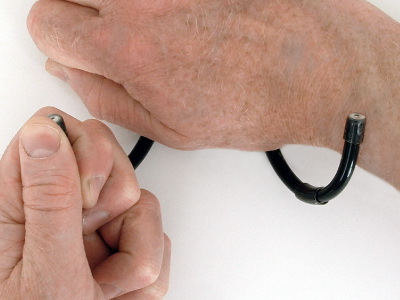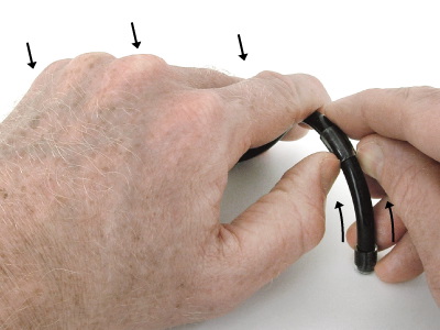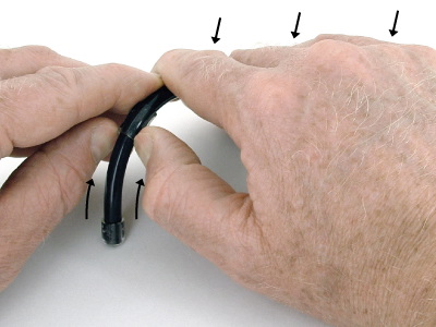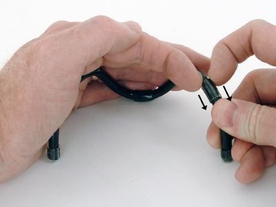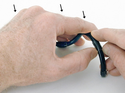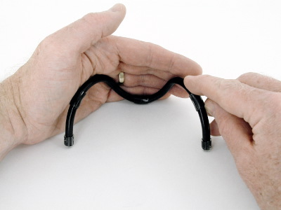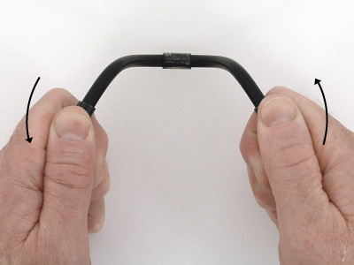 Your leg has been pulled/pushed if the end caps from the top view are not even. (PIC 2-18) Take note which leg is uneven. Flip the riser over. (PIC 2-19) Put pressure on the center bend with one hand, and grab the uneven leg with your other hand. (PIC 2-20) Slowly, bend the leg in the desired direction. (PIC 2-21) Set the riser upright on the table and check to see if it is even. (PIC 2-22) Repeat as needed.