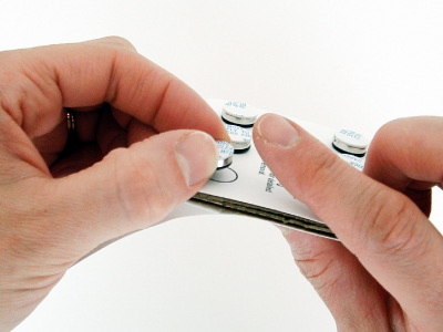 Tool Dots are packaged on a cardboard panel. Each Tool Dot is held in place on the panel by another Tool Dot on the opposite side. When you remove a Tool Dot, the Tool Dot on the backside will fall away. You will need to support the Tool Dot on the back during removal, and make sure removed Tool Dots do not come too close to each other or any metal objects.