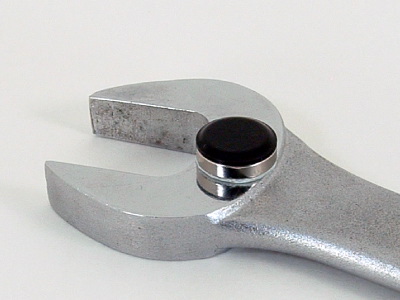 You can hang non-metallic objects as well. The trick is to add a piece of metal to your object to give the Tool Dot something to grab. For instance, you can use "Super Glue" or double-stick foam tape to attach a washer to the back of a tool, or add a metal ring on a lanyard. (PIC 3-7, PIC 3-8, PIC 3-9)